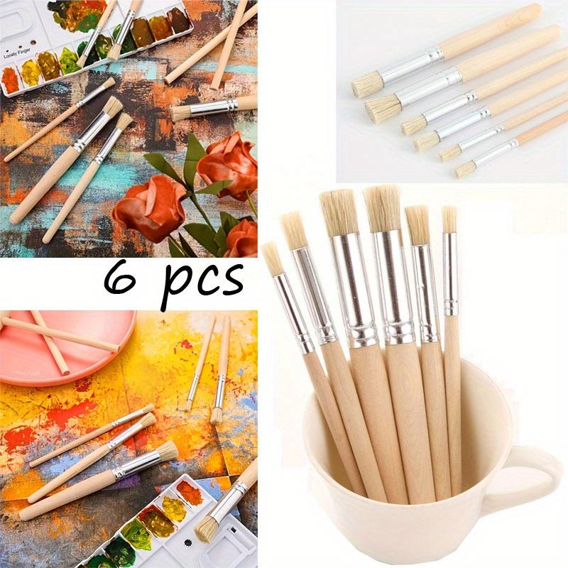 6pcs Stencil Paint Brushes Set Bristle Hair Wooden Handle Perfect For DIY Crafts Watercolor Oil And Acrylic Painting
