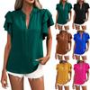 Damska koszula top w jednolitym kolorze z dekoltem w serek, casualowa, z podwójnymi rękawami