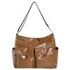 Women's shoulder bag with zipper pu hot sale high quality solid color stitching line casual bag