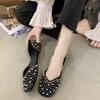 Brokatowe kryształowe perły szpilki baletki damskie kwadratowe palce wsuwane mokasyny przytulne, płytkie wycinane baleriny mieszkania mokasyny damskie
