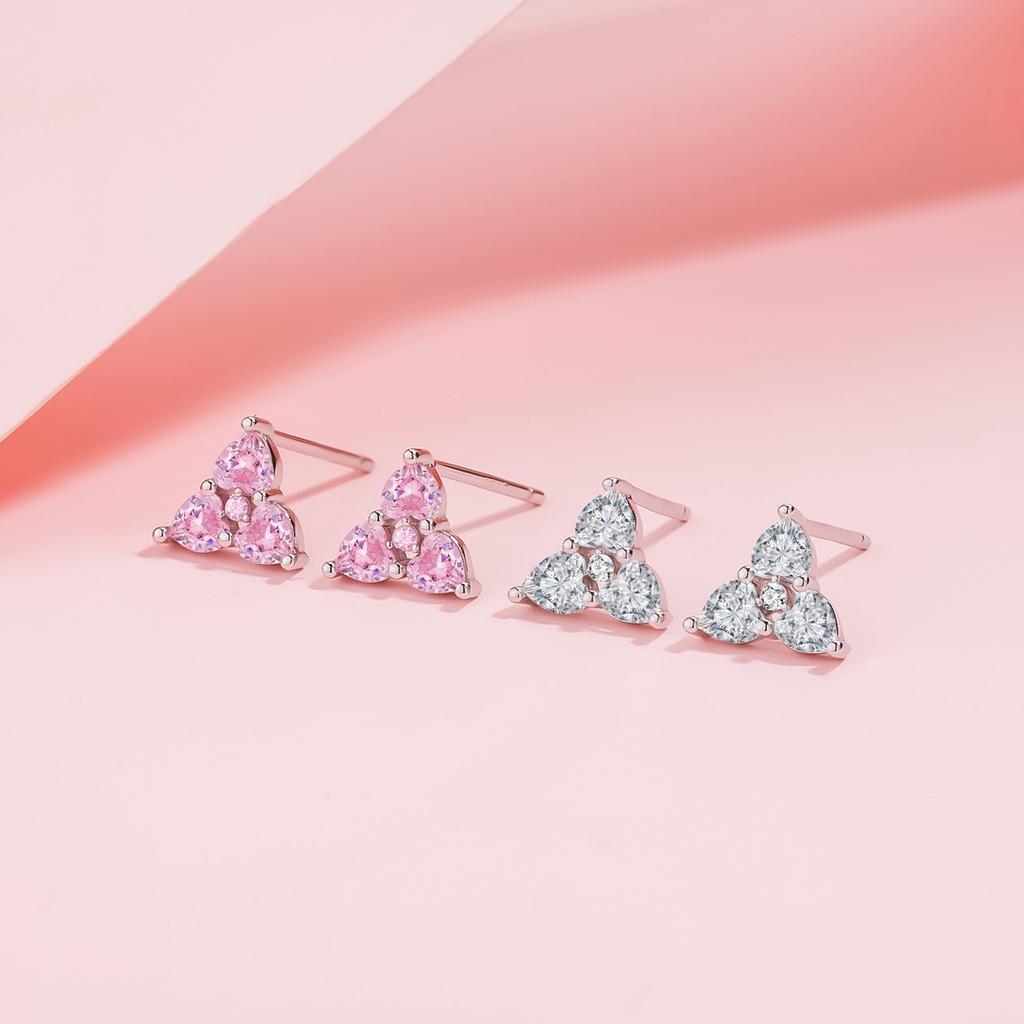 Kolczyki sztyfty Trójkąt Miłość S925 Srebro Modne Różowy Diament Brzoskwiniowe Serce Kolczyki Niszowe Wykwintne Proste Małe Kolczyki