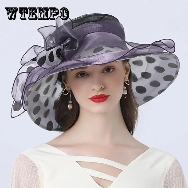 Temperament groszki kapelusz z dużym rondem panie Street Casual kapelusz przeciwsłoneczny Vintage kwiat perłowy Organza kapelusz przeciwsłoneczny plażowy osłona przeciwsłoneczna czapka przeciwsłoneczna z daszkiem Top Hat