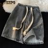 Denim Shorts Summer Woven Drawstring Shorts Men's Thin Section of Casual Retro Loose Large Yards with Five Points