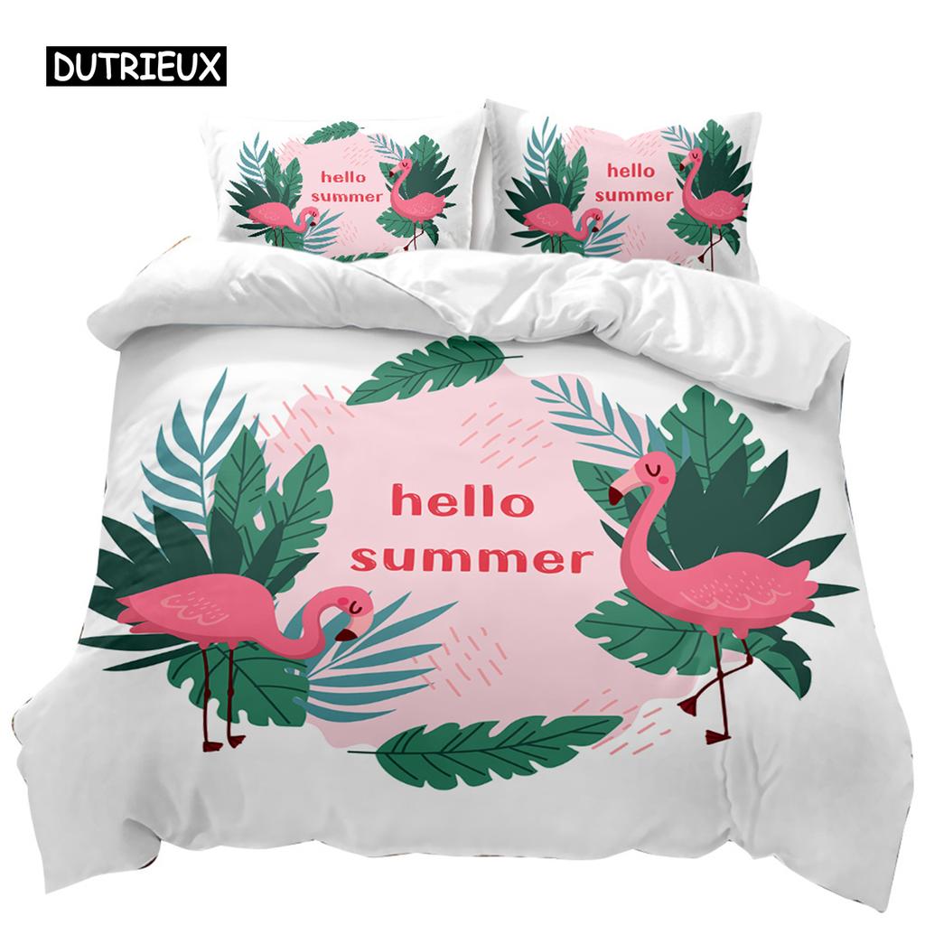Poszwa na kołdrę Flamingo Para Flamingo Liść palmy Zestaw pościeli Twin Tropikalne botaniczne liście Lato King size Poliestrowa poszwa na kołdrę