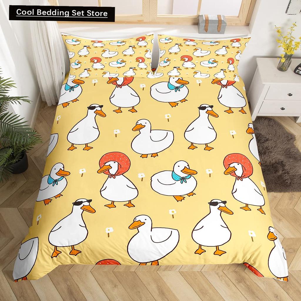 Uroczy kaczor król królowa poszwa na kołdrę kreskówka biała gęś zestaw pościeli zabawny wiejski zwierzęcy poszwa na kołdrę poliestrowa poszwa na kołdrę