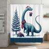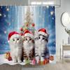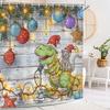 Świąteczna Zasłona Prysznicowa - Zabawny Wzór Kota i Dinozaura z Ozdobami Świątecznymi, Wodoodporny Poliester Dekoracja Łazienki, 72x72in