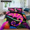 Kameleon Zestaw Poszwy na Kołdrę Motyw Dzikich Zwierząt 3D Zestaw Pościeli na Łóżko Pojedyncze Poszwa na Kołdrę Dzikiej Przyrody Chłopcy Zielony Liść Poliestrowa Poszwa na Kołdrę