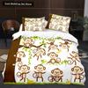 Poszwa na kołdrę Małpa King Queen Uroczy kreskówkowy zestaw pościeli ze zwierzętami dla dzieci chłopca dziewczynki Zielone drzewo w dżungli 2/3 szt. Poliestrowa poszwa na kołdrę