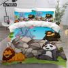 Cartoon Zoo Duvet Cover 3D Forest Animal Bedding Set for Kids Girls Soft Microfiber Quilt Cover with Zipper Closure