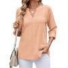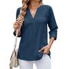 Damska koszulka wiosenno-letnia w jednolitym kolorze z dekoltem w serek i rękawami o długości 7/4, zapinana na guziki, luźna góra