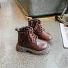 Boys Girls Ankle Boots Handsome Casual Kids Short Boots with Side Zipper 2024 New Children Leather Boots with Metal Decoration
