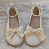 Damskie czółenka Eleganckie płaskie buty Mary Jane Słodka dziewczyna Kokarda z wstążki Łańcuszek z pereł Buty Lolita Wygodne Okrągły nosek Miękka podeszwa Płytkie buty