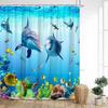 Zasłona prysznicowa z delfinem Niebieski podwodny świat Życie morskie Tkanina poliestrowa Dziecięcy zestaw dekoracyjny do łazienki z motywem oceanicznym z 12 haczykami