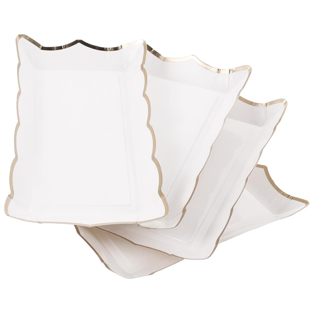 4 szt. kwadratowe papierowe koronkowe talerze prostokątne tace białe do serwowania talerzy na jedzenie taca na babeczki impreza podróżna
