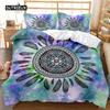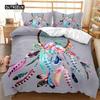 Łapacz Snów Zestaw Poszewki na Kołdrę Zielone Pióra Poszwa na Kołdrę Zielone Paski Zestaw Pościeli Indyjski Styl Plemienny Poliestrowa Poszwa na Kołdrę