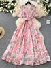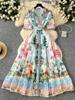 Wiosna Lato Luksusowe Kwiatowe Boho Bohemian Dress Kobiety Karbowany Garnitur Jednorzędowy Krótki Rękaw Maxi Długie Sukienki Imprezowe