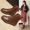 Damskie Wszechstronne Jesień Zima 2024 Pojedyncze Botki Styl Brytyjski Skóra Naturalna Płaska Podeszwa Krótkie Botki Moda Podwyższone Buty Casual