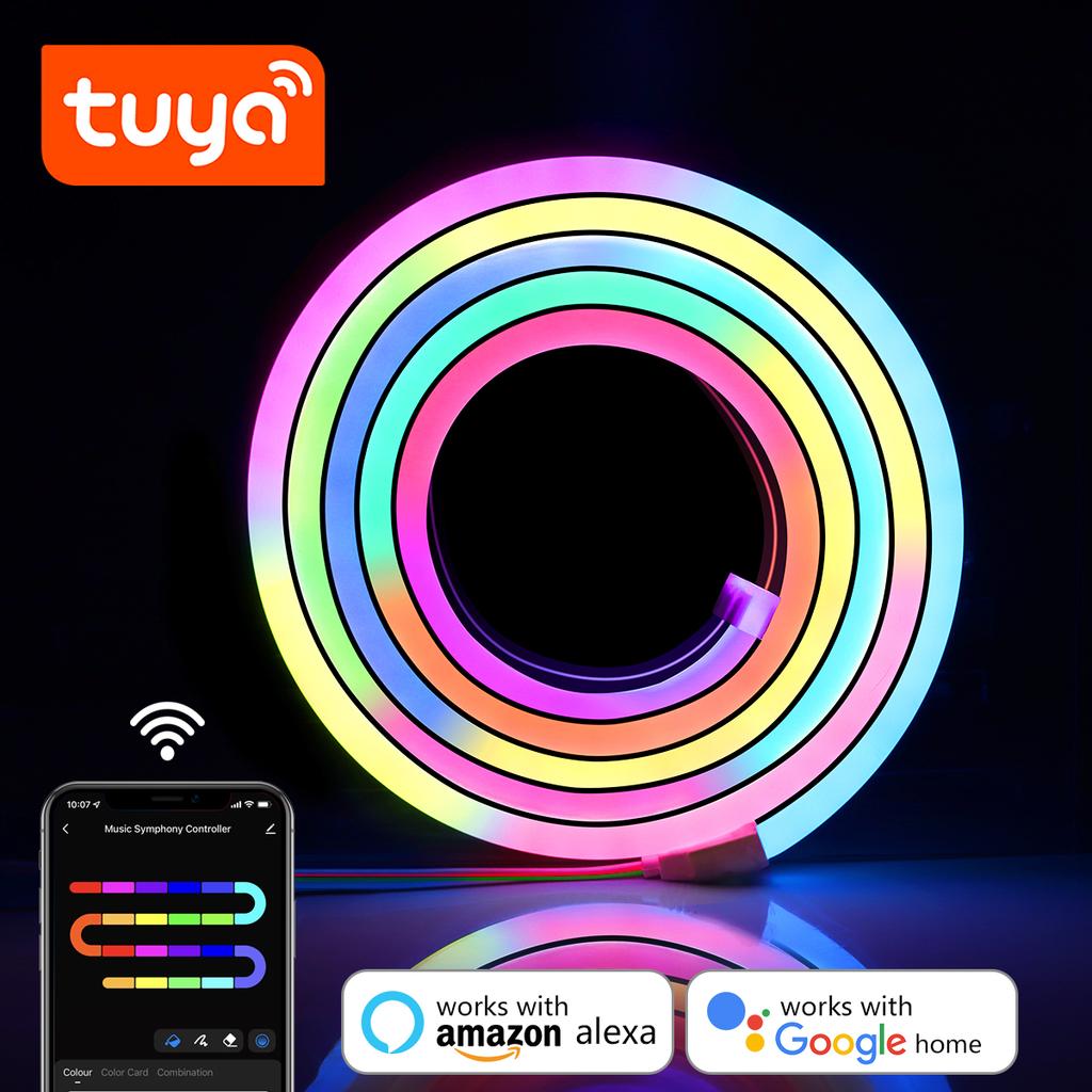 Tuya WiFi LED Neon Strip Light 24V RGBIC Dimmable LED Strip Bluetooth APP Control Waterproof Silicone Tube Neon Tape Wall Decor