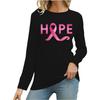 T-shirt z długim rękawem z nadrukiem symbolu różowej wstążki, modna odzież damska na jesień, bawełniany dekolt O, damskie T-shirty, luźne topy