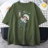 Pływanie Kolorowy Nadruk Meduzy Damskie Unisex Krótki Rękaw Japoński Harajuku O-Neck Topy All-math Oversize Vintage Bawełniane T-Shirty