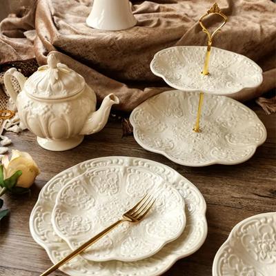 Miski ceramiczne z koronką reliefową Retro tłoczone ceramiczne naczynia stołowe Miski na przekąski Sztuka ceramiczne dekoracyjne miski Naczynia domowe