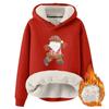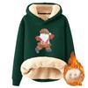 Modna damska bluza z kapturem, nadrukiem świątecznym i polarem, ciepła i luźna