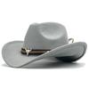 Simple upturned hat woolen jazz hat British top hat cow head belt solid color western cowboy hat