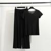 Damski letni jednolity kolor luźny wygodny zestaw składający się z bluzki z krótkim rękawem i spodni, dwuczęściowy zestaw Homewear
