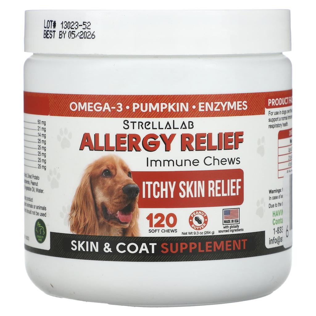 StrellaLab, Allergy Relief, Immunity Chews, Dog, Peanut Butter, 120 Soft Chews, 9.3 oz (264 g)