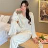 Wiosna Jesień Żakardowa Lodowa Jedwabna Damska Piżama Dwuczęściowy Zestaw Długi Rękaw Spodnie Odzież Do Snu Klasyczna Elegancka Damska Odzież Domowa