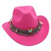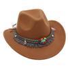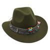 Filcowy kowbojski kapelusz jazzowy w kolorze turkusowym z frędzlami – Outdoor Sun Hat