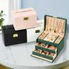 Three Drawer Handheld Jewellery Box Earring Ring Necklace Storage Box PU Leather Jewellery Display Box With Security Key Lock