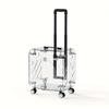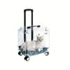 Portable Pet Cat Carrier Suitcase with Wheels, Transparent Hard PC Material, Zip Closure, Telescopic Handle, Breathable Mat,