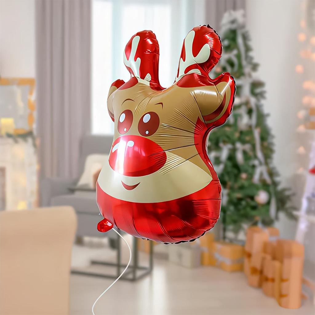 1 szt. balon głowa renifera świątecznego, dekoracja na przyjęcie świąteczne, balon foliowy z czapką Mikołaja, balon na przyjęcie bożonarodzeniowe