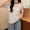 Round neck color-blocked waffle short-sleeved T-shirt for women in summer new Korean version loose, lively, lively and age-reducing half-sleeved top
