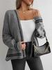 Women's Off-White Bat-Wing Knitted Cardigan – Elegant Long-Sleeved Sweater for Autumn/Winter Commutes.