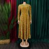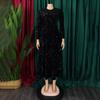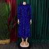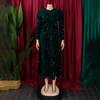 Sukienki damskie z okrągłym dekoltem, długim rękawem, jednolitym kolorem, cekinami, wysokim stanem, o średniej długości