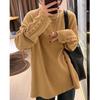 Brown V-neck long-sleeved bottoming shirt for women, autumn and winter mid-length German velvet inner top with T-shirt and shark pants
