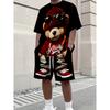 2-Piece Cartoon Bear Print Mens Short Sleeve T-Shirt & Drawstring Shorts Set Summer Casual Top Outdoor Sports Men's Beach Pants