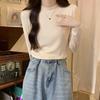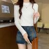 Burgundy right-shoulder long-sleeved T-shirt for women in autumn and winter with small stand-up collar, simple and versatile tight-fitting bottoming