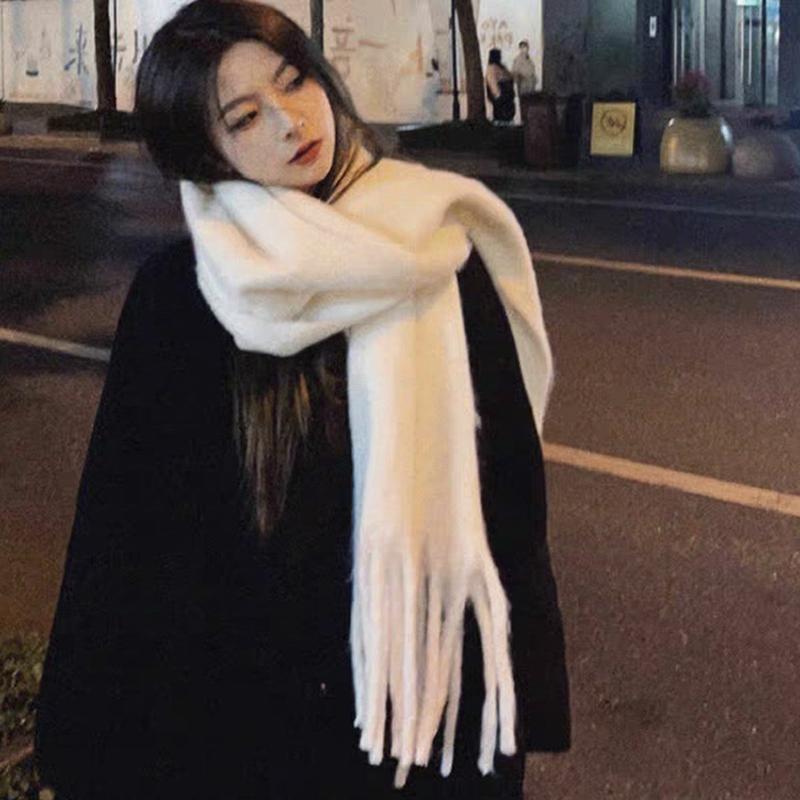 Zimowy szalik dla kobiet kaszmirowy ciepły jednolity kolor chustka damska gruby miękki frędzel puszysty długi wąski szaliki