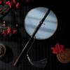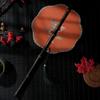 Ancient Purple Bamboo Waist Fan Hanfu Group Chinese Style Long Handle Tassel Folding Fan Classical Portable Hanging