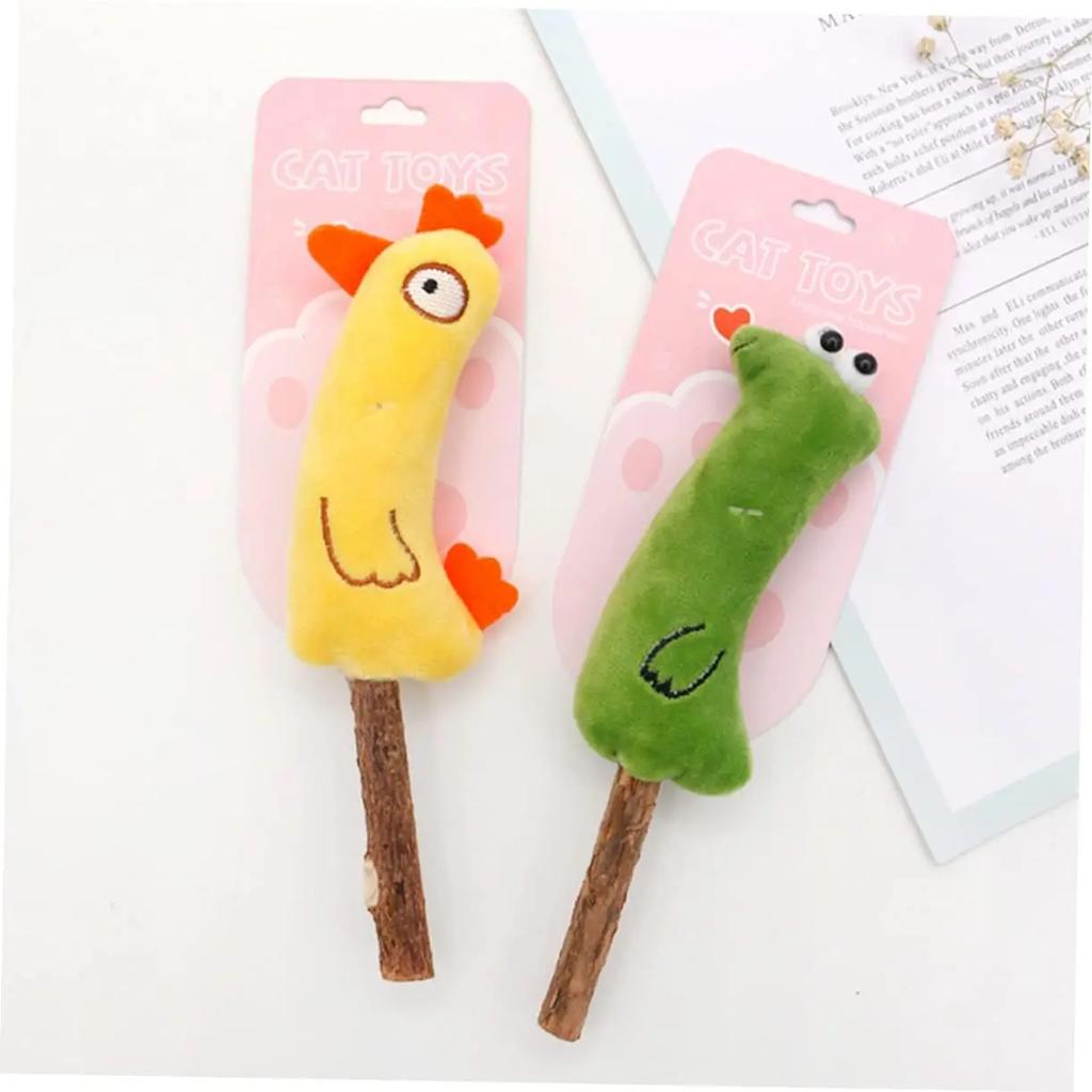 Cat Teething Stick Natural Wood Molar Rods for Dogs Teething Cat Plush Toys Dental Care Chewing Stick Toy Grinding Teeth Rod