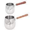 450ML Stal Nierdzewna Podgrzewacz do Masła Mini Garnek do Masła Kawy Mleka Mały Rondel z Drewnianą Rączką