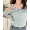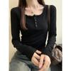 Czyste pragnienie Dekolt U długi rękaw T-shirt wiosna i jesień koronka splicing półotwarty kołnierz koszulka bazowa niski dekolt obojczyk prawe ramię top