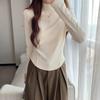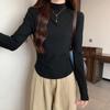 Long-sleeved bottoming shirt, T-shirt for women, half turtleneck, fishbone waist, layered inner layer, autumn and winter velvet warm top