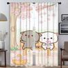 Zasłony Kuchenne 2 Sztuki Brzoskwiniowy Kot Mochi Zasłona do Salonu Tiul do Sypialni Dekoracja Halloween Zasłony do Wnętrza Domu