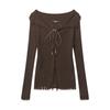 Wiosenny Damski Nowy Sweter w Stylu Spice Girl z Otworami i Paskami, Dopasowany, z Długim Rękawem