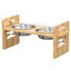 - 【Materiał wysokiej jakości】 Podwyższona miska na karmę dla kota wykonana z bambusa, z misą ze stali nierdzewnej, trwała w użyciu i łatwa do czyszczenia.