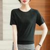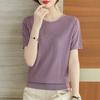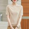 Summer Women's Ice Silk Knitted T-shirt Mom Summer Outfit Thin Hollow Out Knitted Top Short Sleeve